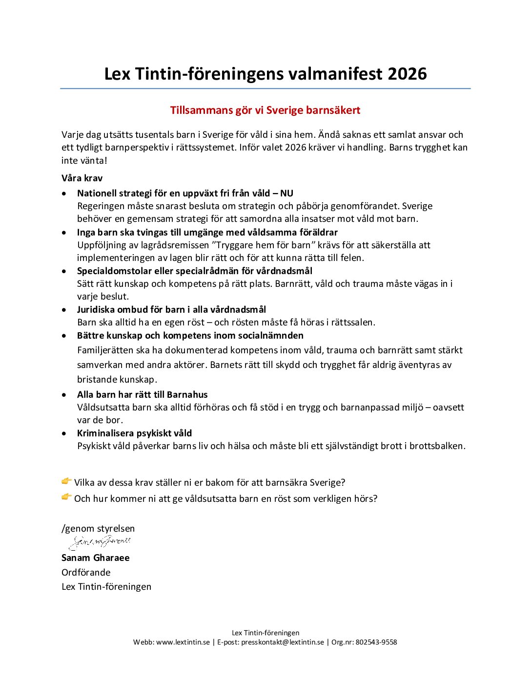 säger Sanam Gharaee, ordförande i Lex Tintin.